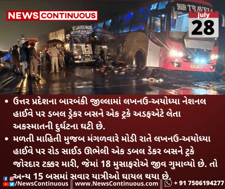 ઉત્તર પ્રદેશના બારબંકી જીલ્લામાં લખનઉ-અયોધ્યા નેશનલ હાઈવે પર ડબલ ડ્રેકર બસને એક ટ્રકે અડફએટે લેતા અકસ્માતની દુર્ઘટના ઘટી છે.