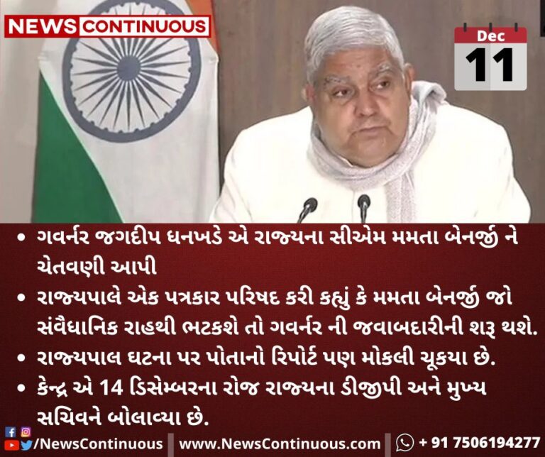 - ગવર્નર જગદીપ ધનખડે એ રાજ્યના સીએમ મમતા બેનર્જી ને ચેતવણી આપી