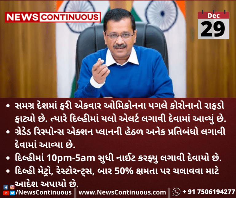 દિલ્હીમાં 10pm-5am સુધી નાઈટ કરફ્યુ લગાવી દેવાયો છે.
