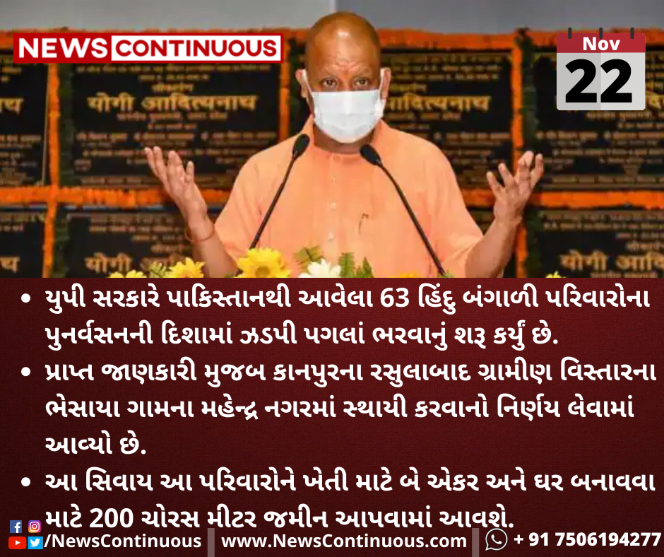 યુપી સરકારે પાકિસ્તાનથી આવેલા 63 હિંદુ બંગાળી પરિવારોના પુનર્વસનની દિશામાં ઝડપી પગલાં ભરવાનું શરૂ કર્યું છે.
