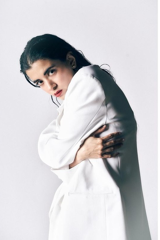 આ તસવીરો માં સબા આઝાદ બ્લેક બ્રેલેટ સાથે સફેદ બ્લેઝર  માં જોવા મળી રહી છે.