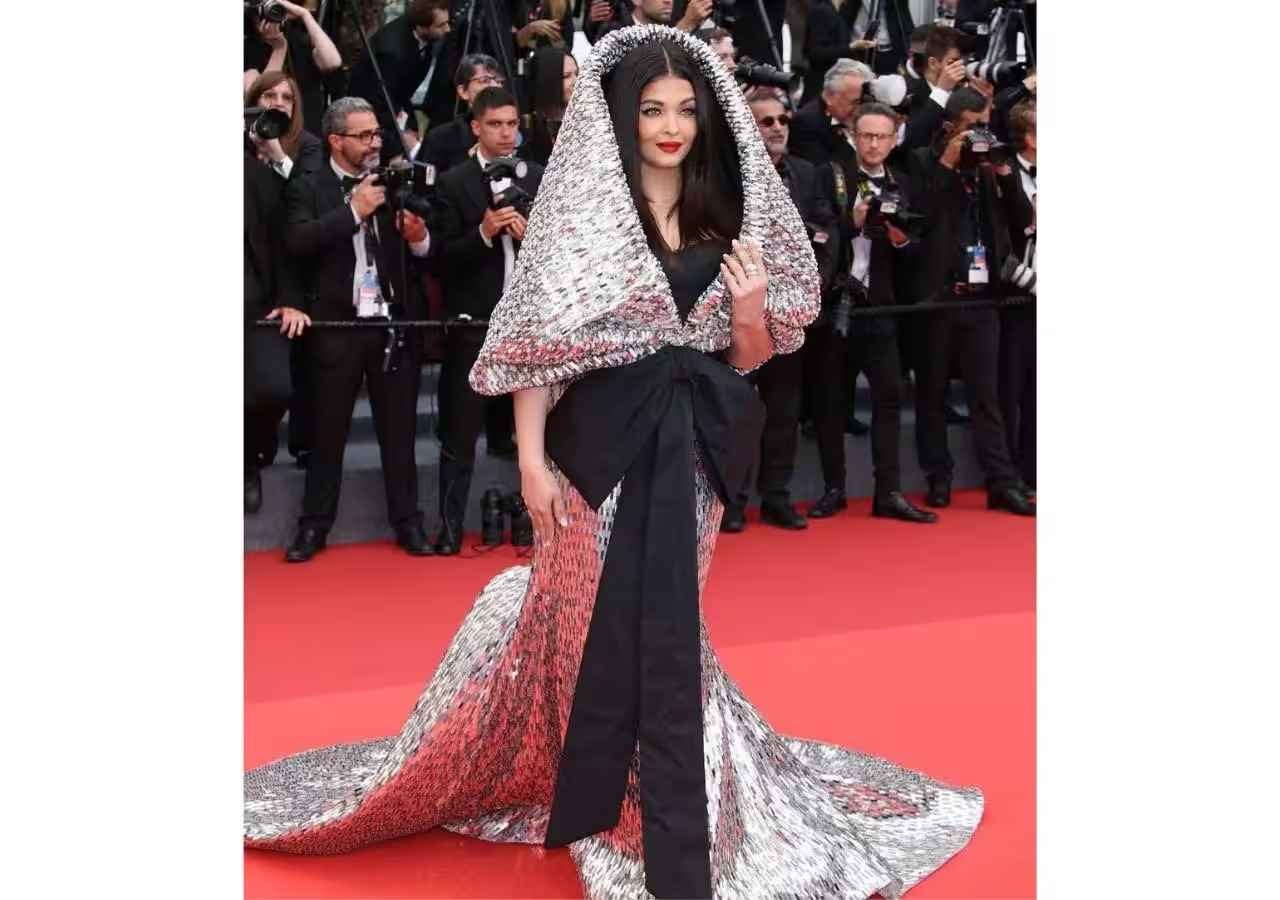 કાન્સ ફિલ્મ ફેસ્ટિવલ માં ઐશ્વર્યા ખૂબ જ હેવી સિલ્વર ગાઉન પહેરેલી જોવા મળી હતી