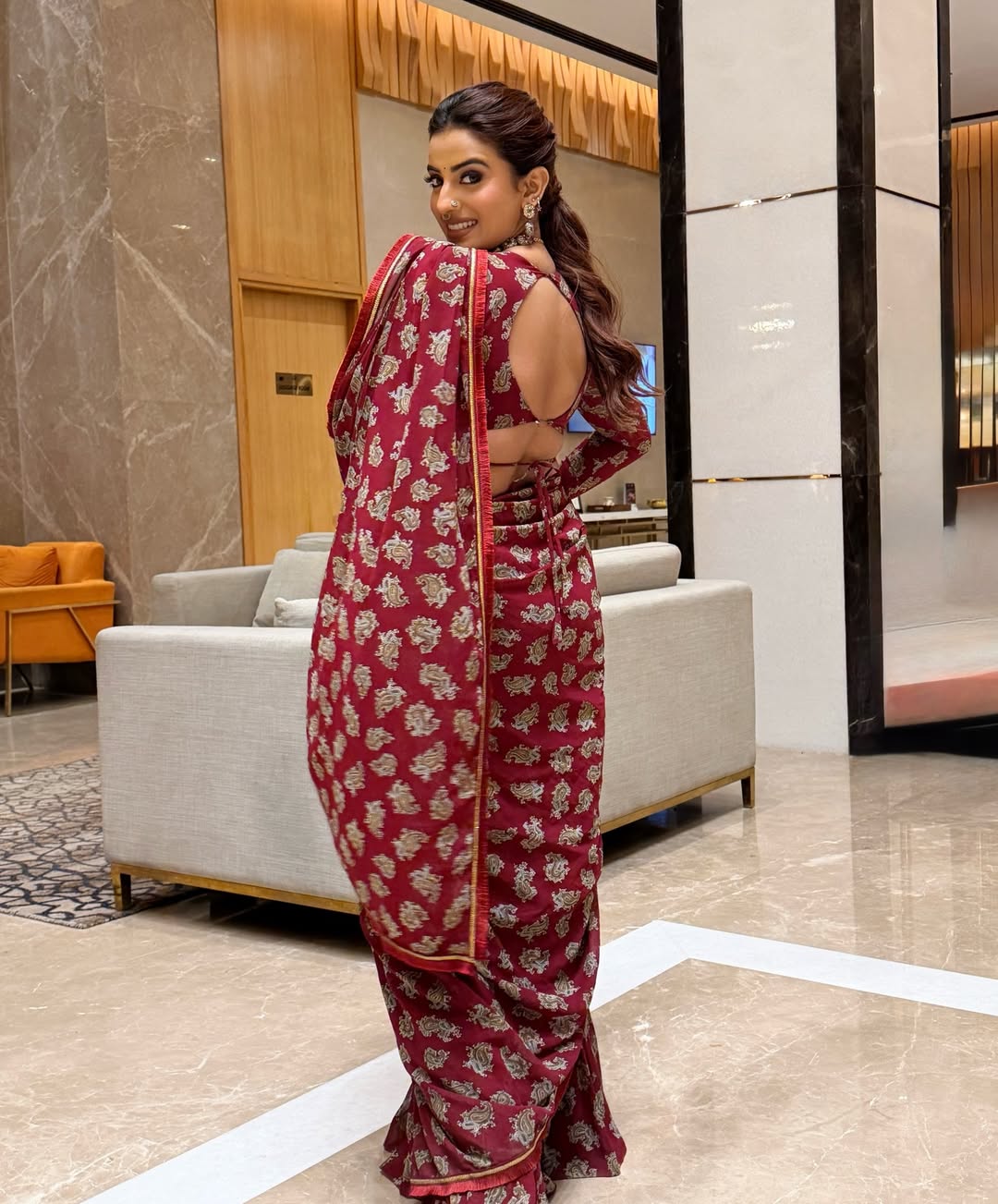 અક્ષરાએ કેપ્શનમાં લખ્યું, "ના જ્યાદા શોર, ના જ્યાદા સજાવટ. સાડી ઔર ઓક્સિડાઈઝ્ડ ગેહનો કે સાથ દેશી અદા."