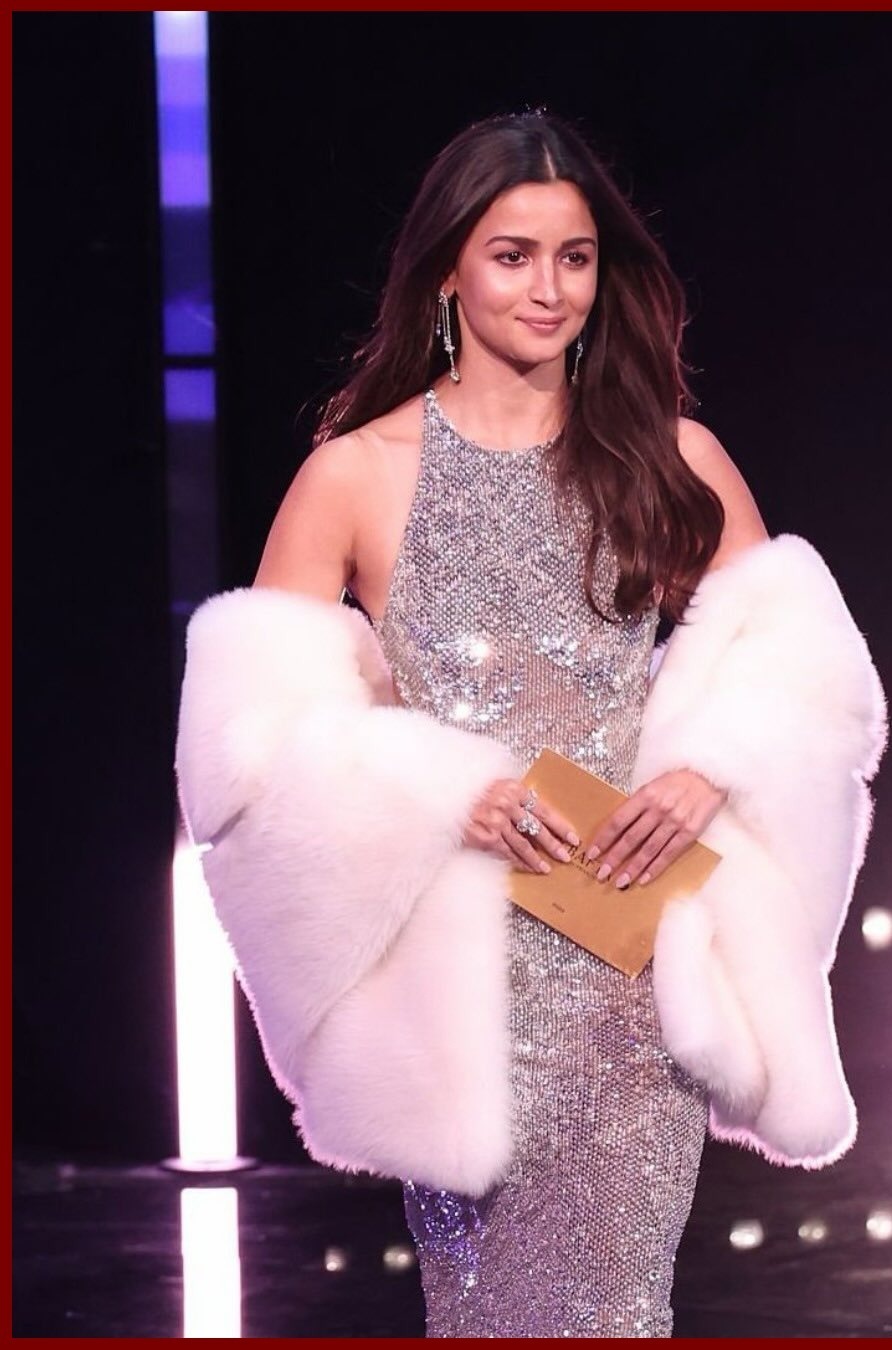 આલિયા એ ગુઇચીનો કસ્ટમ-મેડ સિલ્વર સીક્વિન ગાઉન પહેર્યો હતો