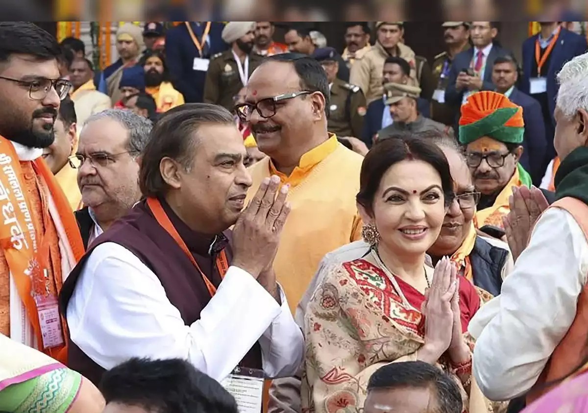 રામ મંદિરના પ્રાણ પ્રતિષ્ઠા સમારોહમાં હાજરી આપવા રિલાયન્સ ઈન્ડસ્ટ્રીઝના ચેરમેન મુકેશ અંબાણી અયોધ્યા પહોંચ્યા હતા.