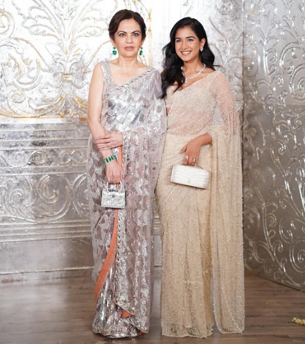નીતા અંબાણીએ આ લૂકને હાર્ટ-શેપ કોલમ્બિયન નીલમનીબુટ્ટી અને મેચિંગ નીલમ-જડિત બ્રેસલેટથી કમ્પ્લીટ કર્યો હતો.