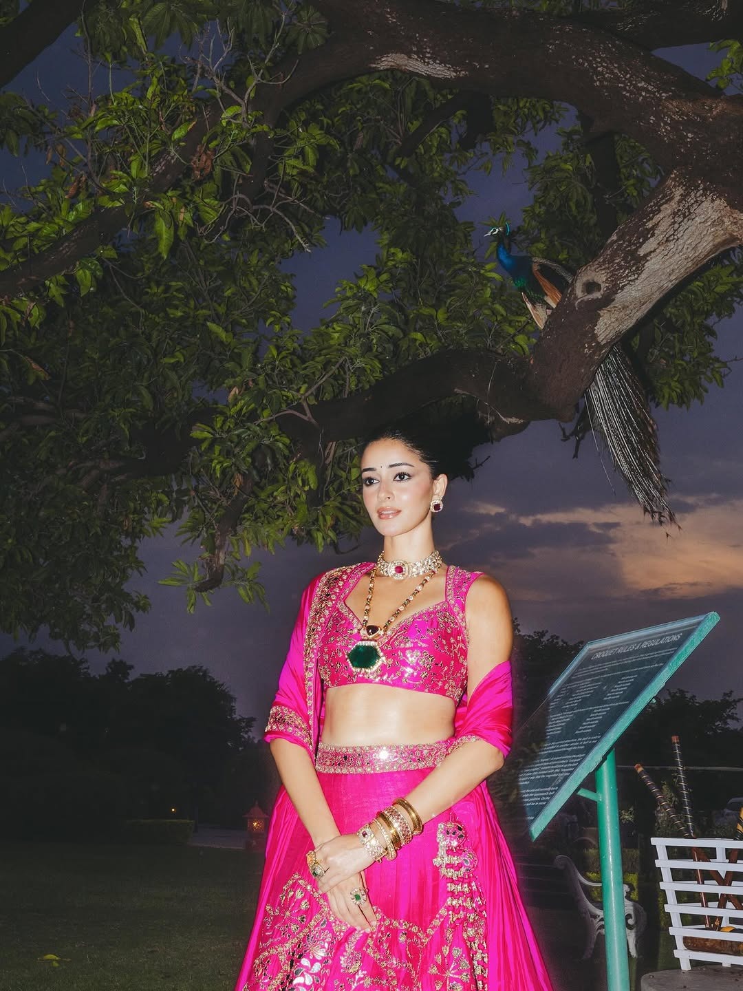 આ તસવીરો માં અનન્યા ગુલાબી રંગના પરંપરાગત લહેંગામાં જોવા મળે છે.