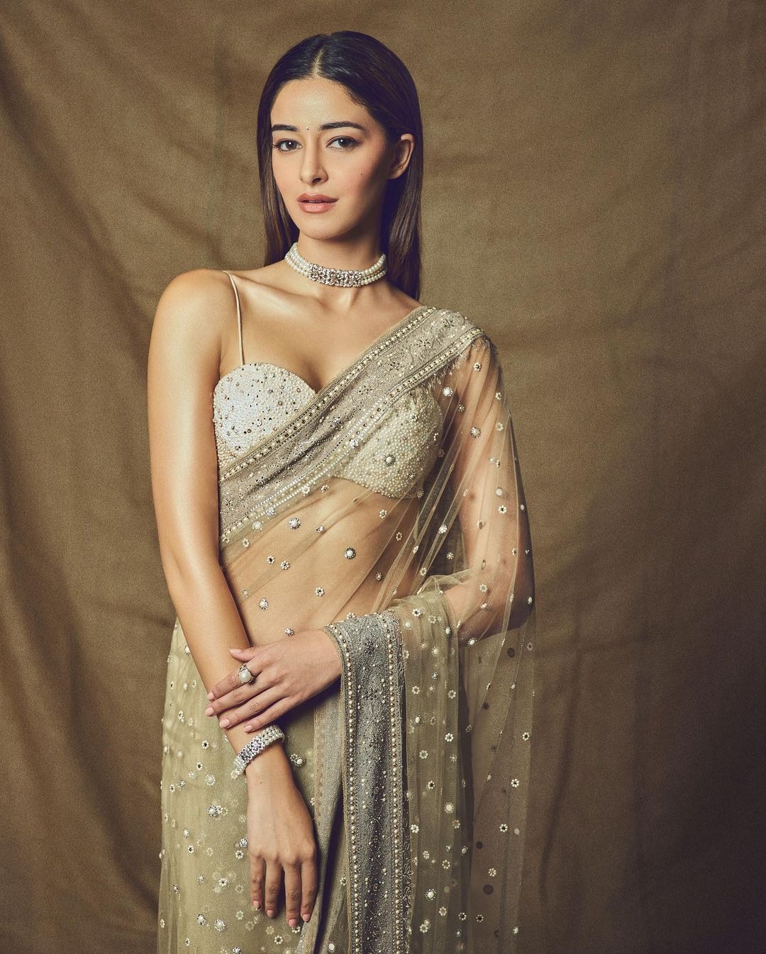 આ તસવીરો માં અનન્યા ફ્લોરલ સાડી માં ખુબ જ સુંદર જોવા મળી રહી છે.