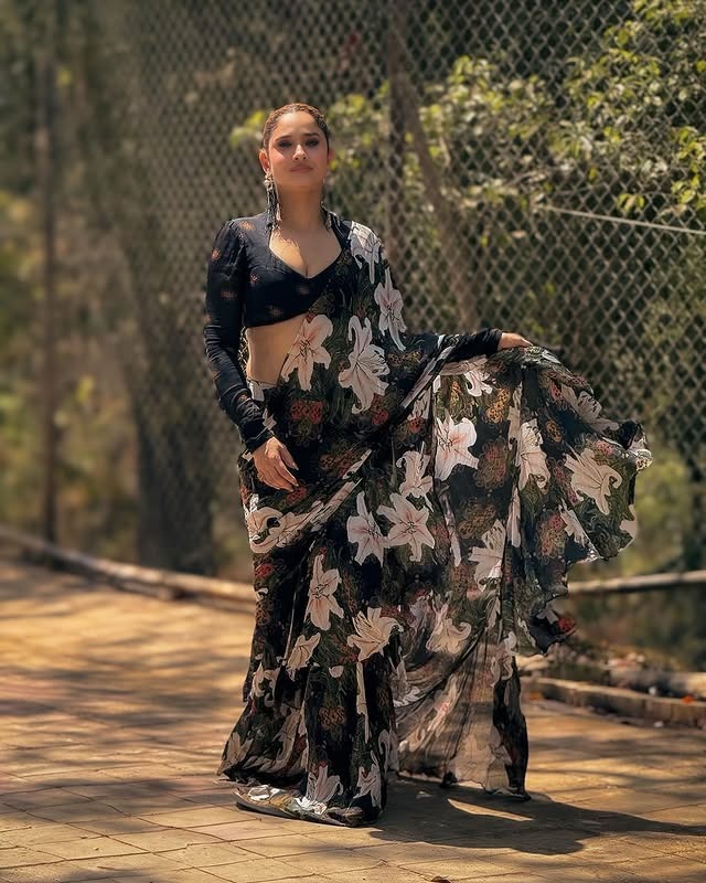 આ તસવીરો માં અંકિતા બ્લેક ફ્લોરલ સાડી માં જોવા મળી રહી છે.