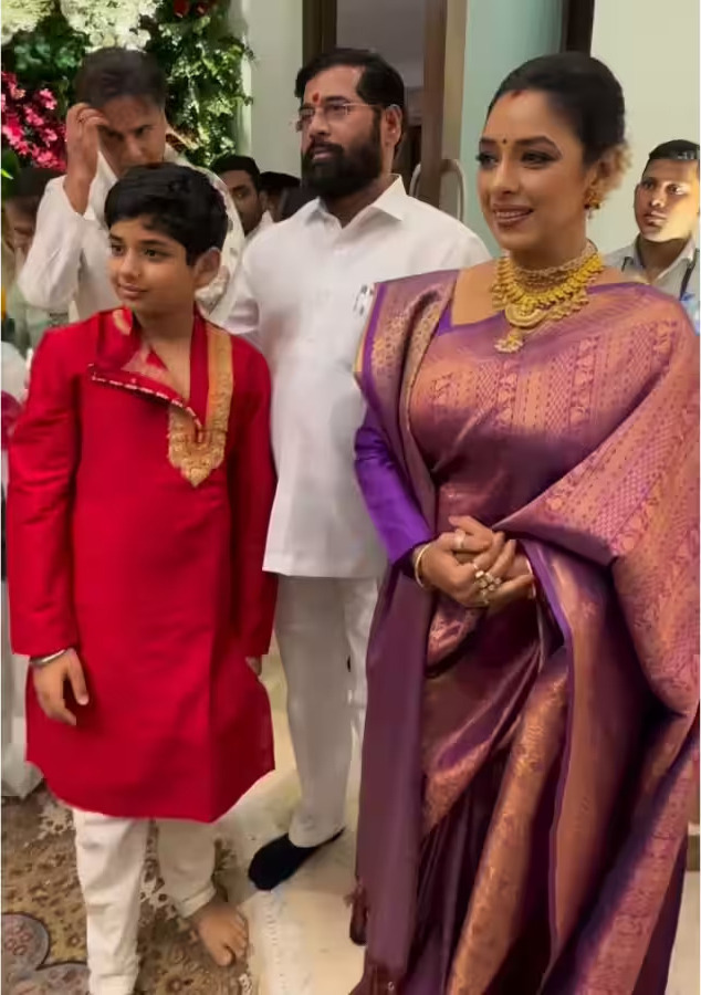 અભિનેત્રી રશ્મિ દેસાઈએ પણ ગણપતિ બાપ્પાના દર્શન કર્યા હતા. આ તસવીરમાં રશ્મિ મુખ્યમંત્રી એકનાથ શિંદે સાથે પોઝ આપતી જોવા મળી રહી છે.