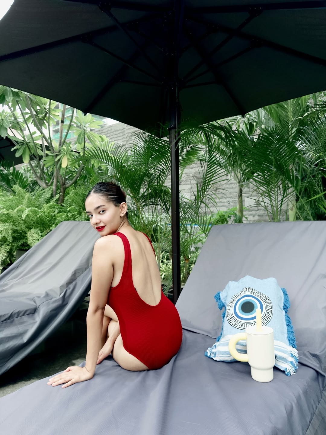 આ તસવીરો માં અનુષ્કા રેડ મોનોકીની માં પુલ કિનારે જોવા મળી રહી છે.