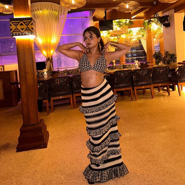 આ બ્રેલેટ સાથે અવનીતે લાંબો સ્કર્ટ પહેર્યો છે.