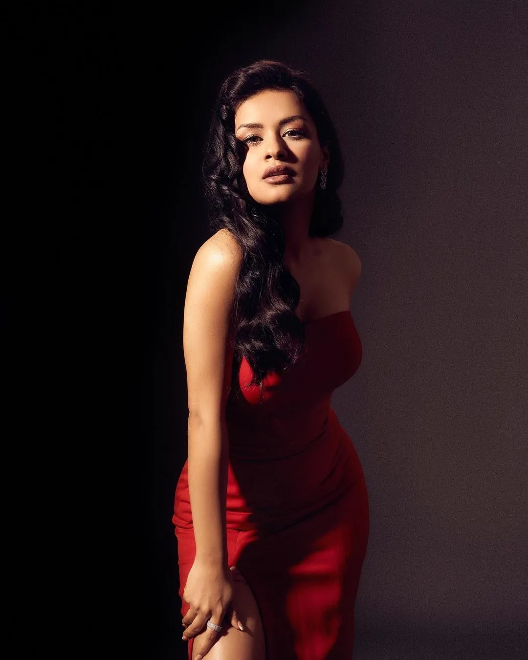 આ તસવીરોમાં અભિનેત્રીએ રેડ કલરનો થાઈ હાઇ સ્લિટ ડ્રેસ પહેર્યો છે, જેમાં તે ખૂબ જ સિઝલિંગ અને હોટ લાગી રહી છે