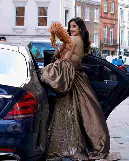 જાહ્નવી કપૂરે બ્રાઉન શીમરી ગાઉન સાથે હળવો