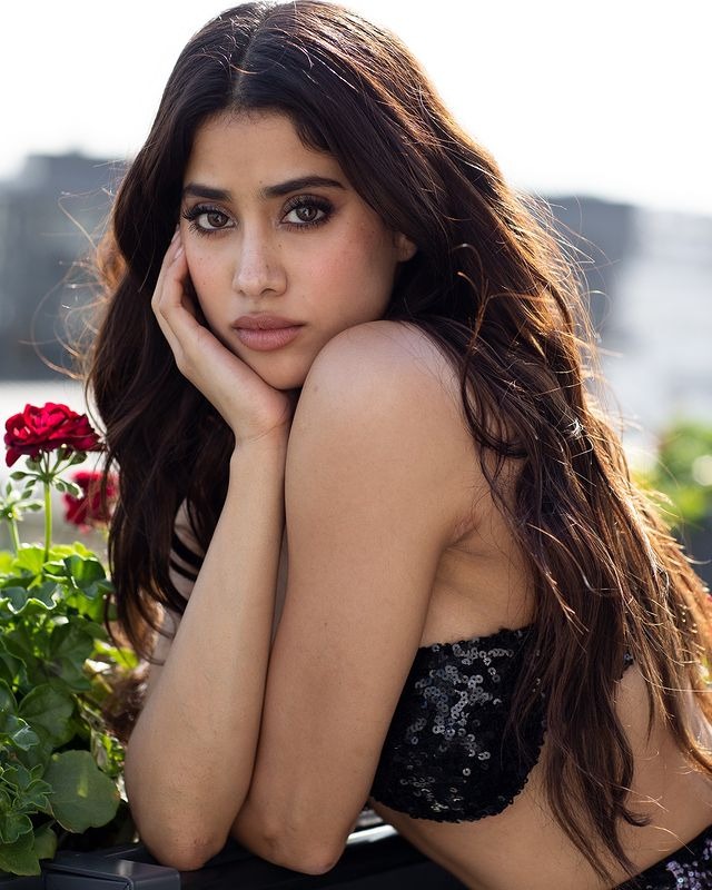 આ તસવીરો માં જાહ્નવી બ્લેક બ્રેલેટ અને ફ્લોર ટચિંગ લોંગ સ્કર્ટમાં જોવા મળી રહી છે