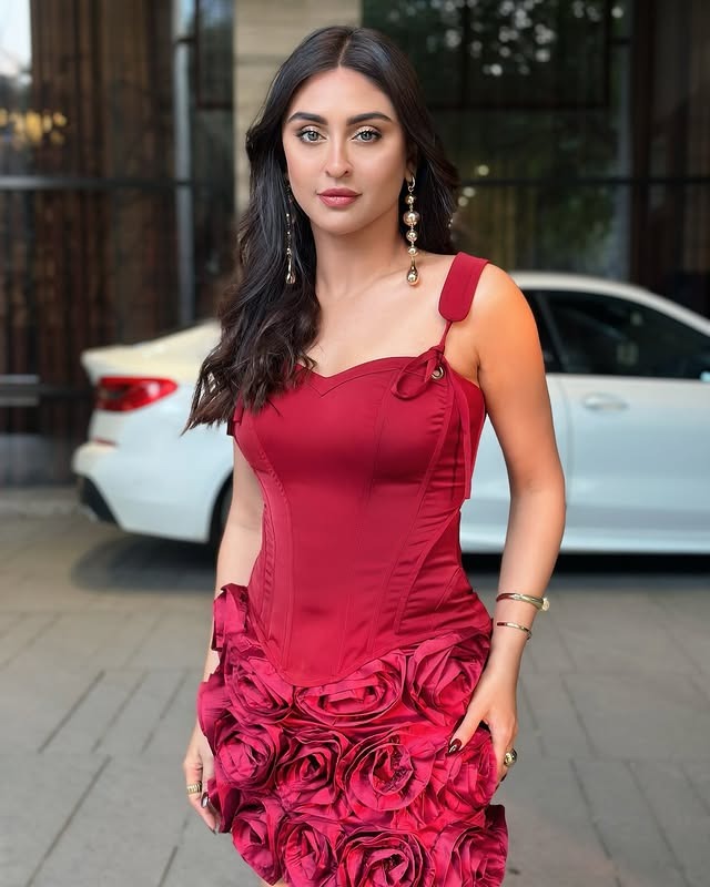 આ તસવીરો માં ક્રિસ્ટલ રેડ શોર્ટ ડ્રેસ માં એકદમ બોલ્ડ લાગી રહી છે.