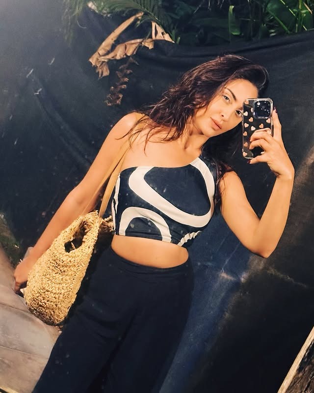 આ તસવીરો માં ક્રિસ્ટલ બ્લેક એન્ડ વ્હાઇટ આઉટફિટ માં જોવા મળી રહી છે.
