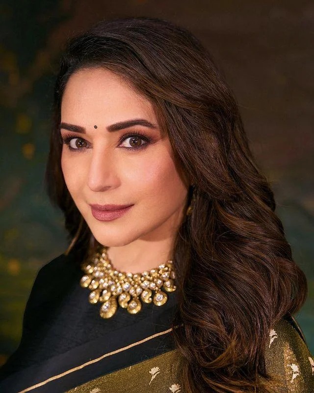 આ તસવીરો માં માધુરી બ્લેક સાડી માં ખુબ જ સુંદર જોવા મળી રહી છે.
