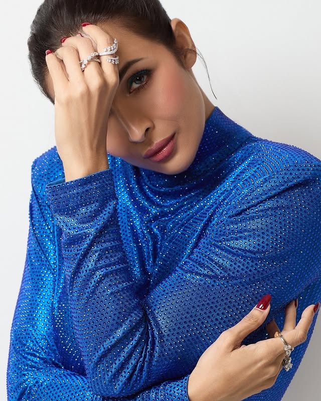 આ તસવીરો માં મલાઈકા બ્લુ કલર ના શોર્ટ શિમરી ડ્રેસ માં જોવા મળી રહી છે.