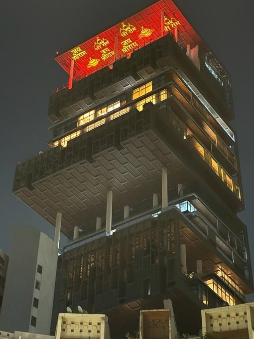 રામ મંદિરના અભિષેકની પૂર્વ સંધ્યાએ મુંબઈમાં મુકેશ અંબાણીના આલીશાન ઘર એન્ટિલિયા પણ રામના નામથી ઝગમગી ઉઠ્યું હતું