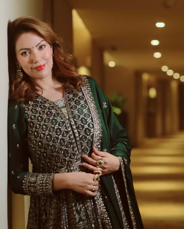 આ તસવીરો માં મુનમુન ગ્રીન કલર ના અનારકલી ડ્રેસ માં ખુબ જ સુંદર જોવા મળી રહી છે.