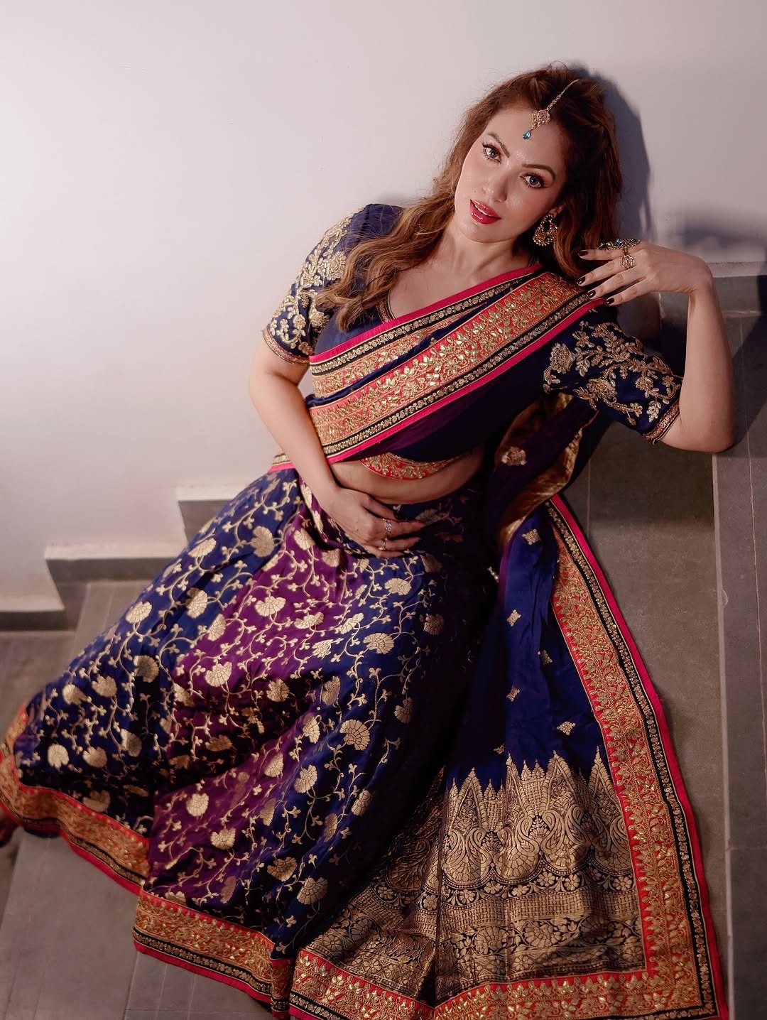આ તસવીરો માં મુનમુન બ્લુ કલર ના લહેંગા ચોલી માં જોવા મળી રહી છે.