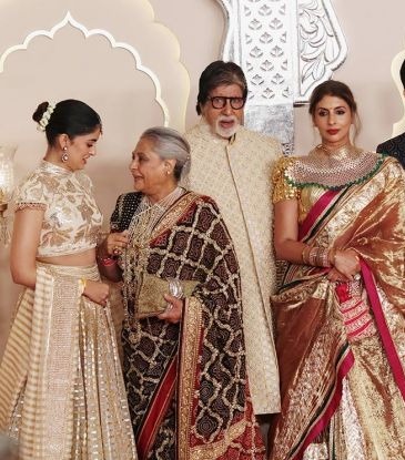 અનંત અને રાધિકા ના લગ્ન માં નવ્યા અબુ જાની સંદીપ ખોસલા દ્વારા ડિઝાઇન કરેલ આઉટફિટ માં જોવા મળી હતી.