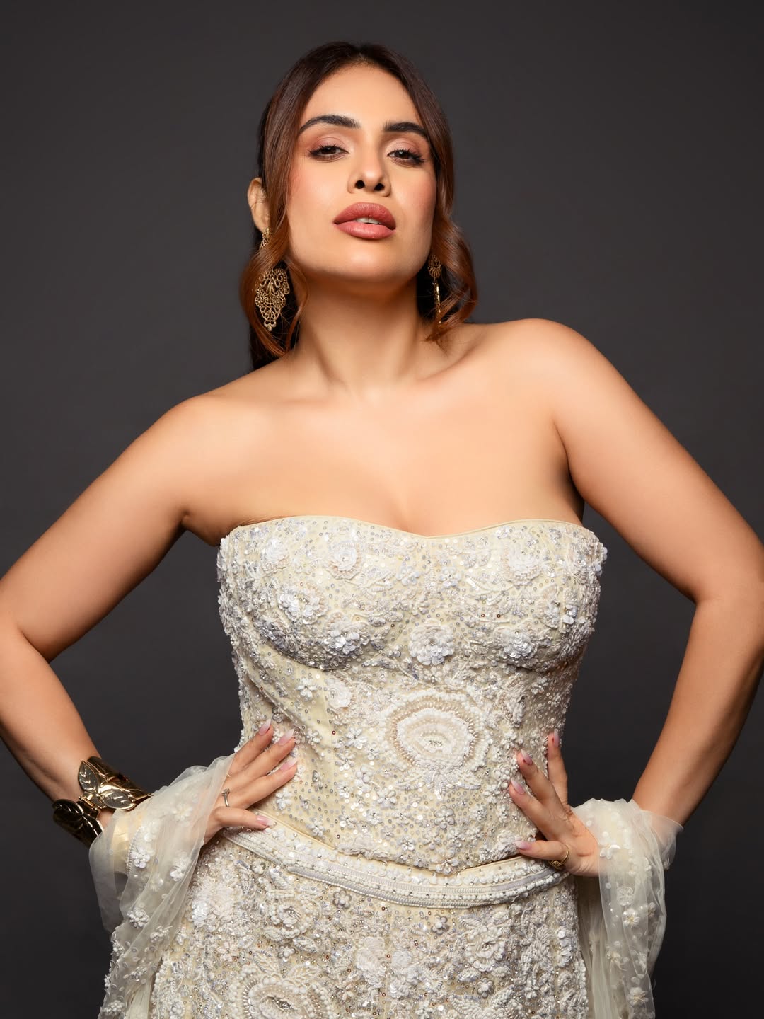 આ તસવીરો માં નેહા ક્રીમ કલર ના લહેંગા ચોલી માં જોવા મળી રહી છે.
