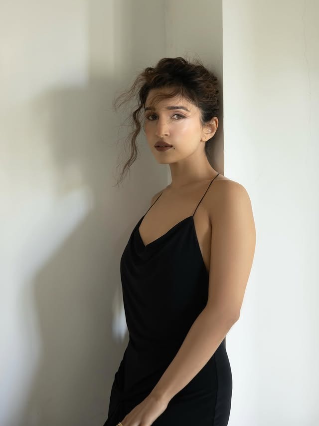 આ તસવીરો માં નિધિ બ્લેક ગાઉન માં જોવા મળી રહી છે.