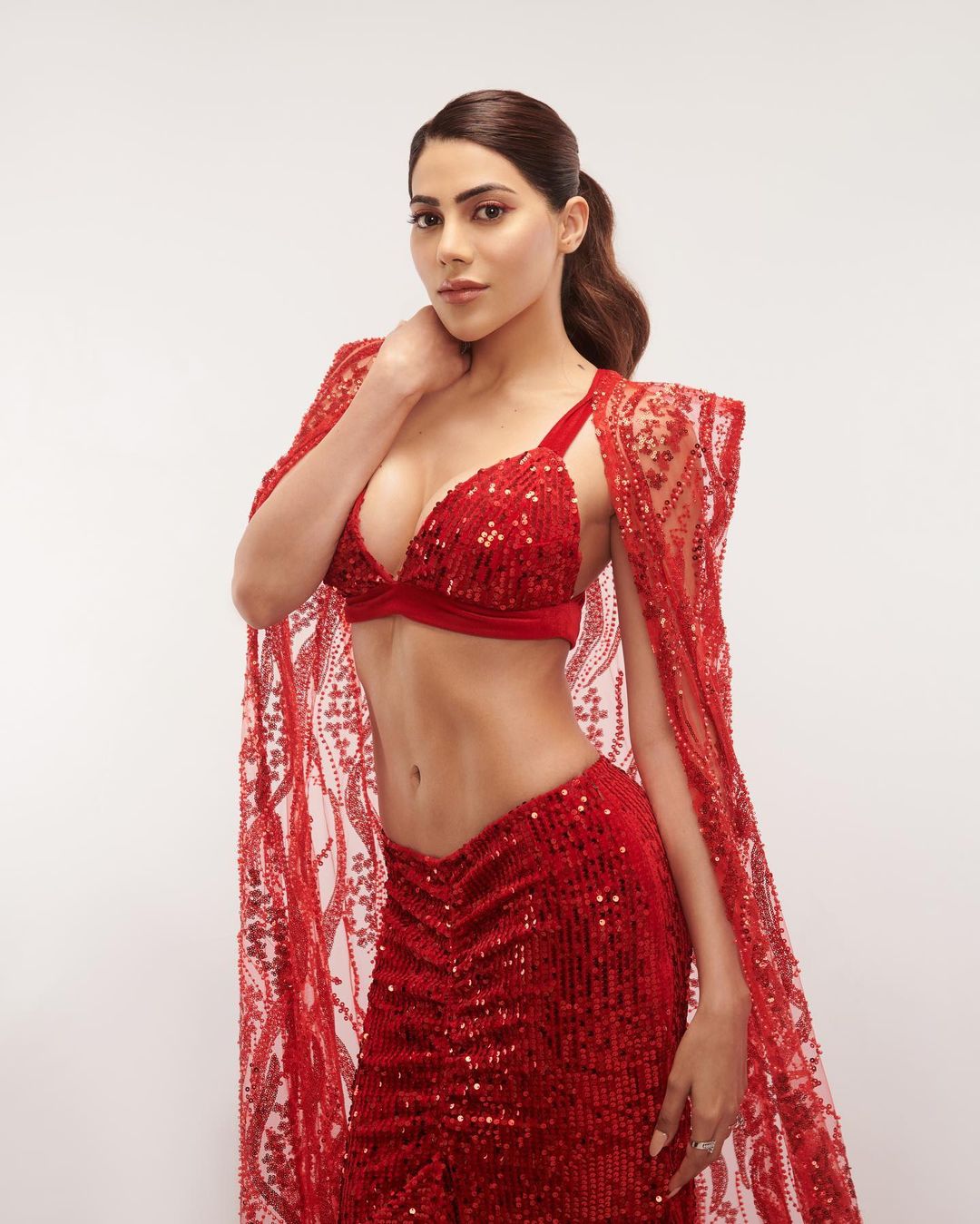 રેડ કલરના આઉટફિટમાં નિક્કી ખૂબ જ ગ્લેમરસ લાગી રહી છે.