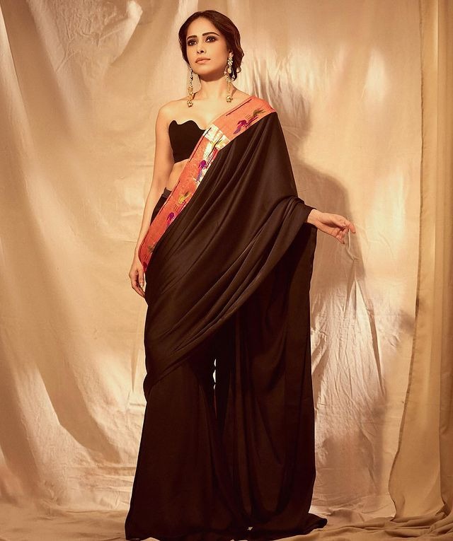 આ સાડી સાથે નુસરતે બ્લેક ટ્યુબ સ્ટાઇલ નો બ્લાઉઝ પહેર્યો હતો