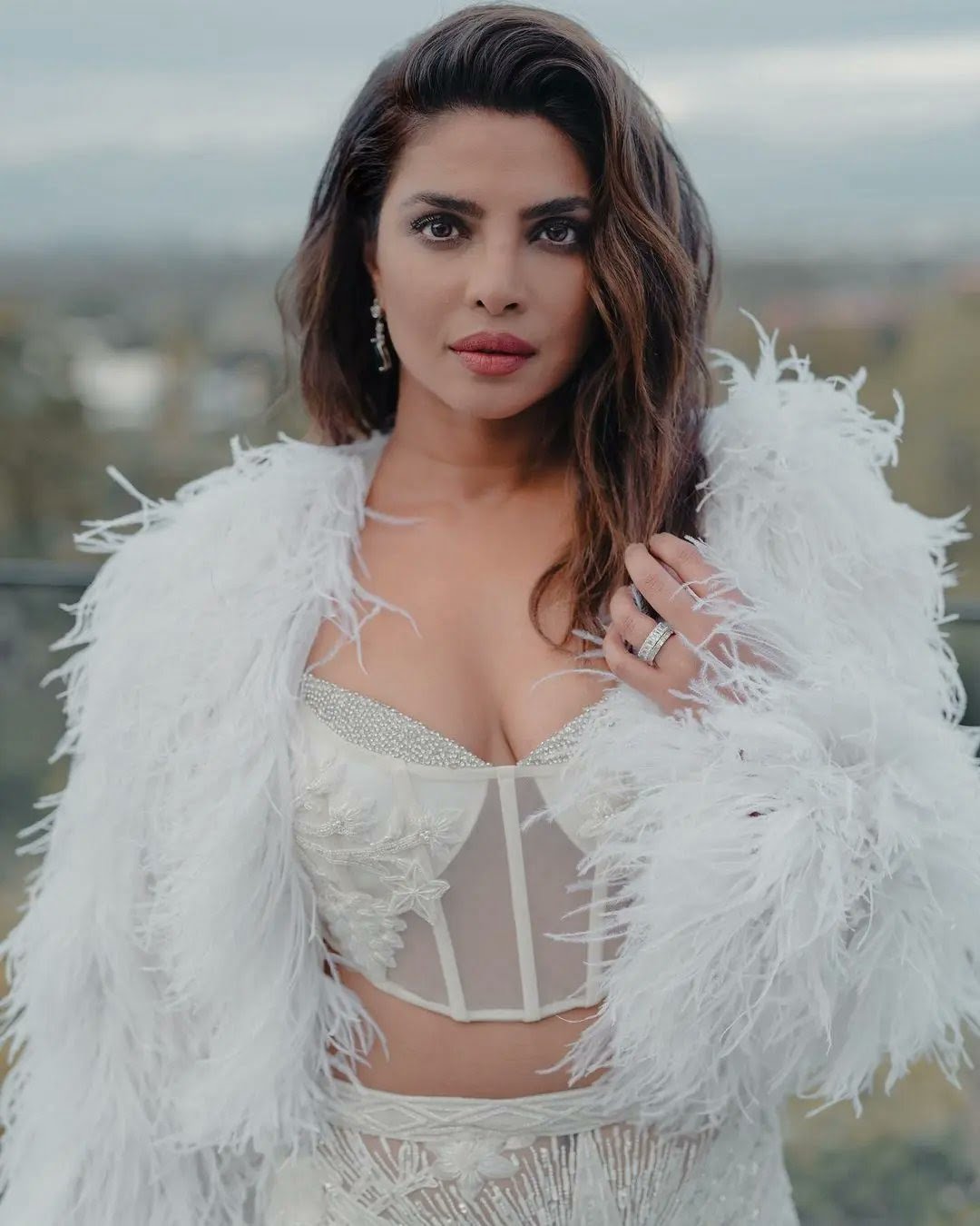પ્રિયંકા ચોપરાના આઉટફિટમાં કોર્સેટ ટોપ, સ્કર્ટ અને ફર જેકેટ નો સમાવેશ થતો હતો.