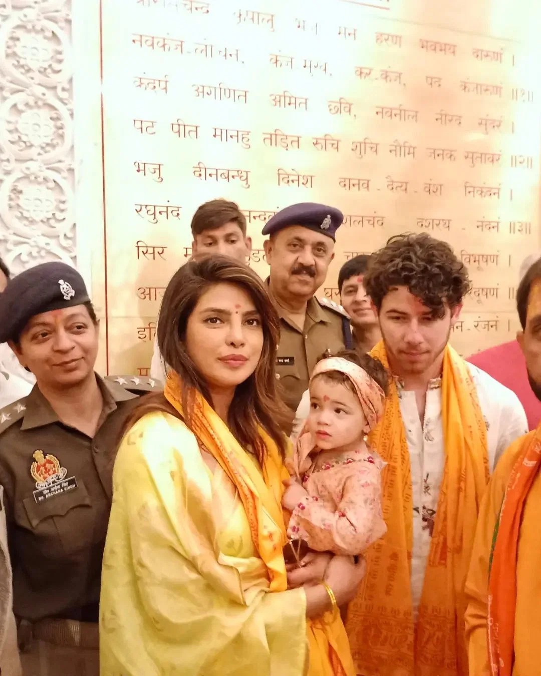 પ્રિયંકા ચોપરા તેના પતિ નિક જોનાસ અને પુત્રી માલતી મેરી સાથે અયોધ્યા પહોંચી હતી.