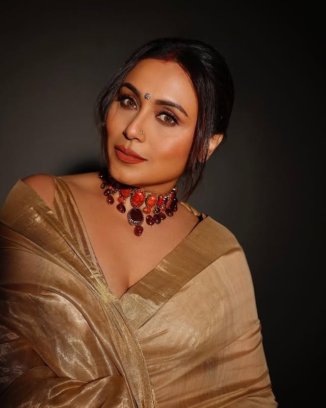 આ તસવીરો માં રાની ગોલ્ડન સાડી માં ખુબ જ સુંદર જોવા મળી રહી છે.