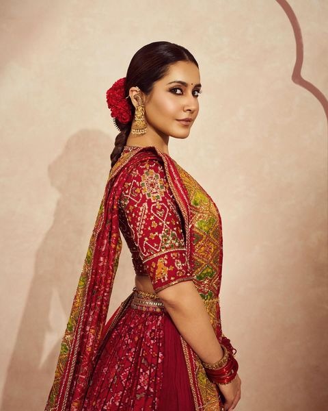 આ તસવીરો માં રાશિ રેડ ચણીયા ચોળી માં જોવા મળી રહી છે.