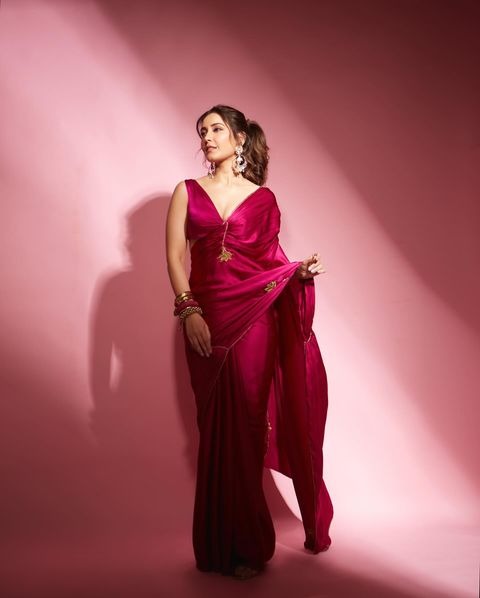 આ તસવીરો માં રાશિ પિંક સાડી માં ખુબ જ સુંદર જોવા મળી રહી છે.