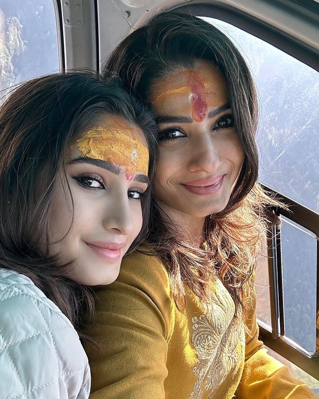 રવીના ટંડન અને તેની દીકરી રાશા  હેલિકપટર દ્વારા કેદારનાથ ધામ પહોંચી હતી.