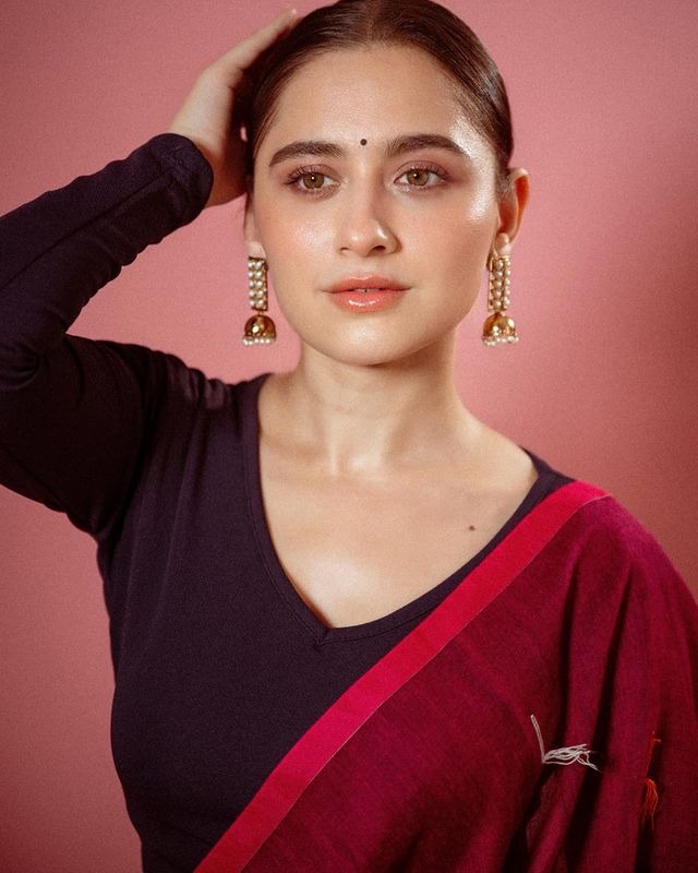 આ તસવીરો માં સંજીદા સિમ્પલ રાણી કલર ની સાડી માં જોવા મળી રહી છે.