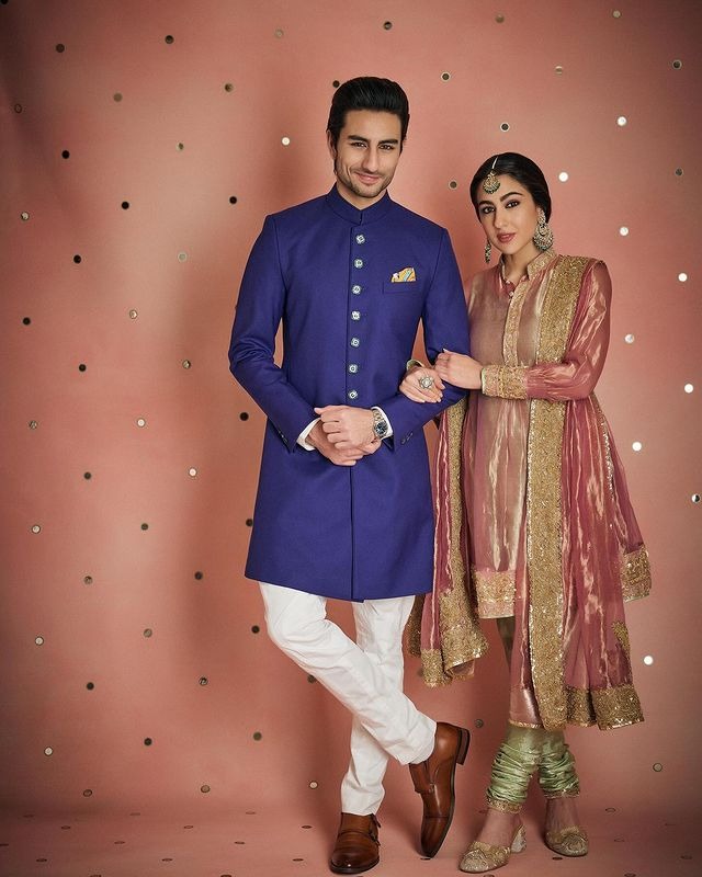 આ તસવીરો માં સારા અલી ખાન અને ઇબ્રાહિમ અલી ખાન ટ્રેડિશનલ લુકમાં જોવા મળી રહ્યા છે.
