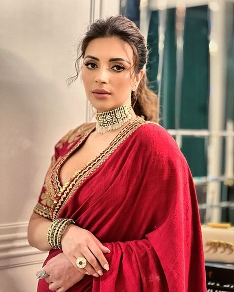 આ તસવીરો માં શમા લાલ સાડી માં જોવા મળી રહી છે.