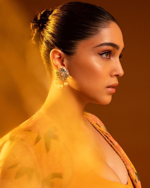 શર્વરી વાઘે તેના લેટેસ્ટ ફોટોશૂટ દરમિયાન પીળા રંગની ફ્લોરલ લૂકની સાડી પહેરી છે.