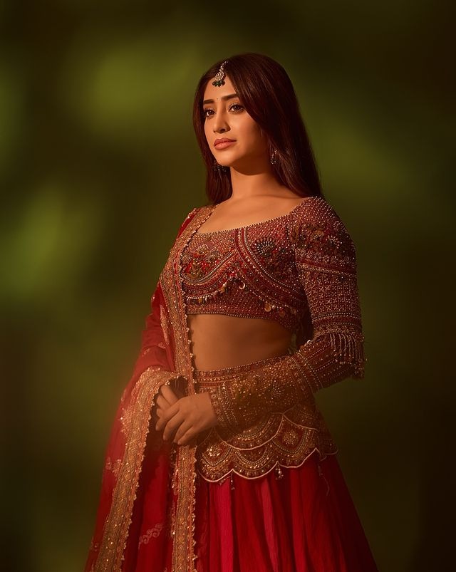 આ તસવીરો માં શિવાંગી લાલ લહેંગા ચોલી માં જોવા મળી રહી છે.
