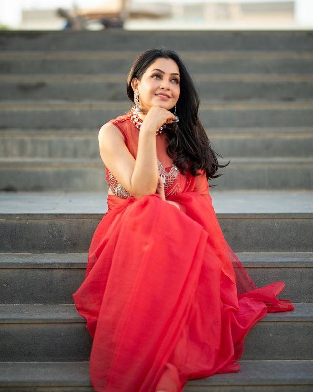 આ તસવીરો માં શુભાંગી લાલ સાડી માં ખુબ જ સુંદર જોવા મળી રહી છે.
