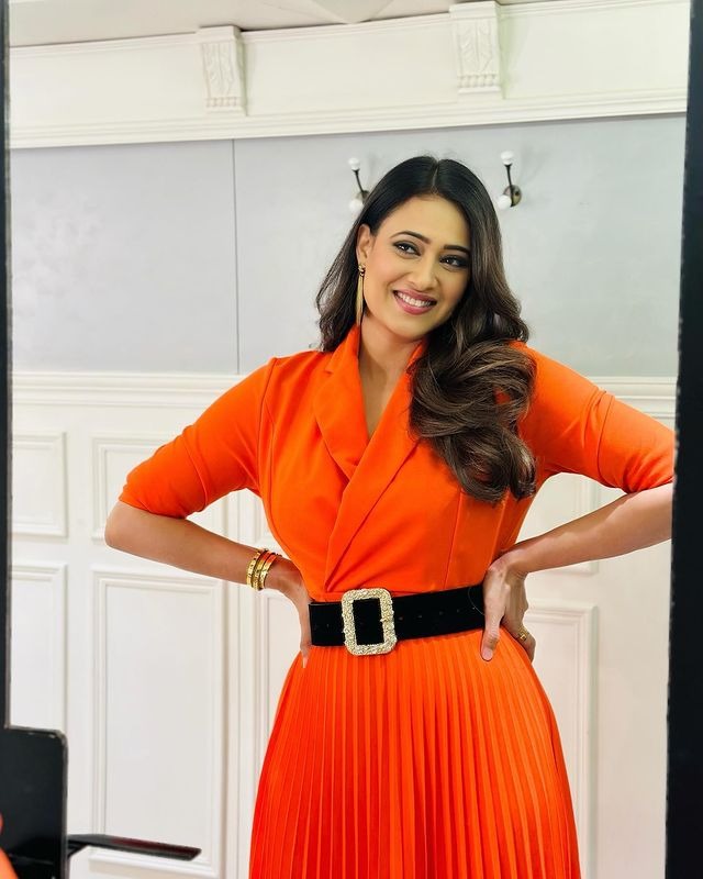 આ તસવીરોમાં શ્વેતા ઓરેન્જ કલર ના ડ્રેસ માં જોવા મળી રહી છે. .