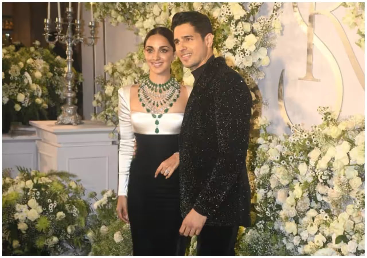 વેડિંગ રિસેપ્શન માં સિદ્ધાર્થ કિયારા એકસાથે ડેશિંગ અને ક્લાસી દેખાતા હતા.