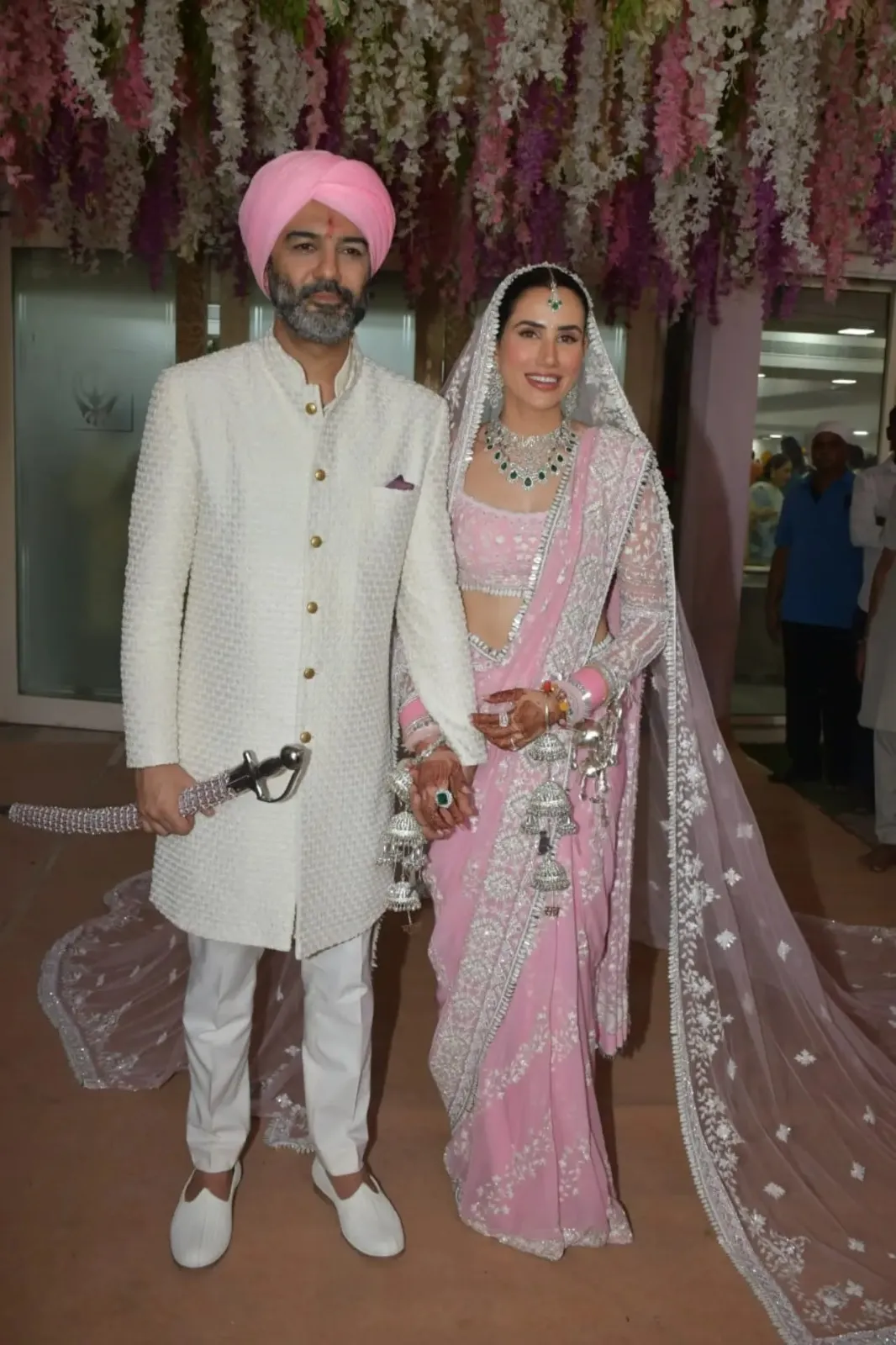 સોનાલી સહગલે સિલ્વર લહેંગા પહેર્યો હતો, આ સાથે હાથમાં ગુલાબી બંગડી અને માંગ માં સિંદૂર પણ જોવા મળ્યું હતું.