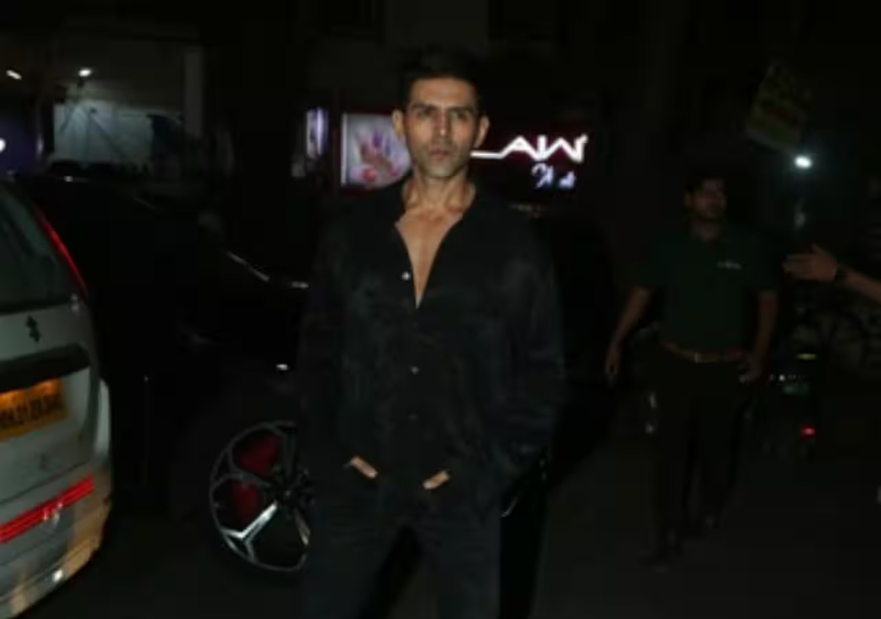 બોલિવૂડ અભિનેત્રી તારા સુતરીયા પણ ઓલ બ્લેક લુક માં કાર્તિક ની પાર્ટી માં પહોંચી હતી.
