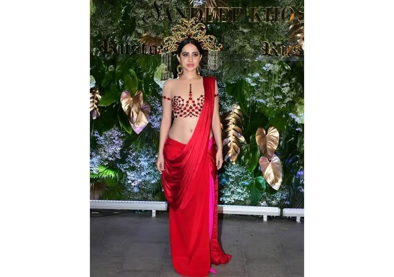 ઉર્ફી જાવેદ અબુજાની અને સંદીપ ખોસલાની ઈવેન્ટમાં લાલ સાડી પહેરીને પહોંચી હતી, જેમાં તેનો લુક જોવા જેવો હતો.
