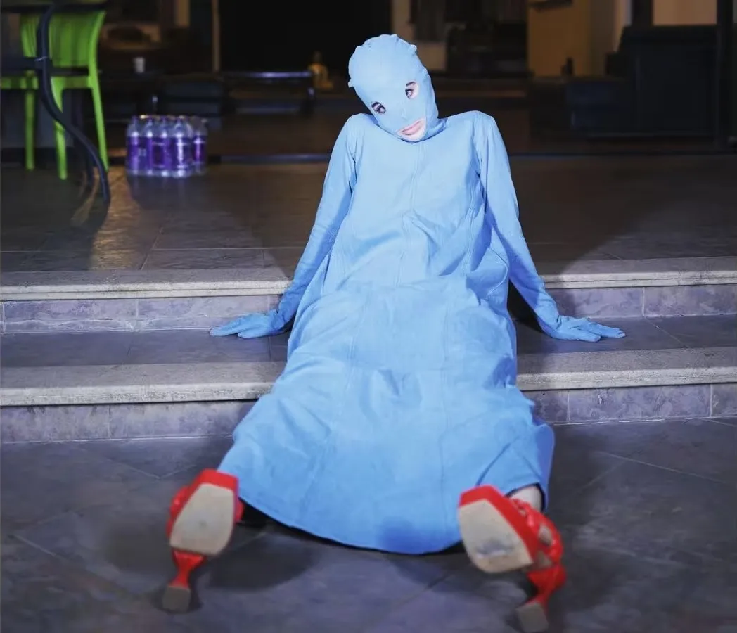 આ આઉટફિટમાં ઉર્ફીએ આંખો, નાક, મોં અને આંગળીઓ માટે કટઆઉટ ડિઝાઇન કરી છે.