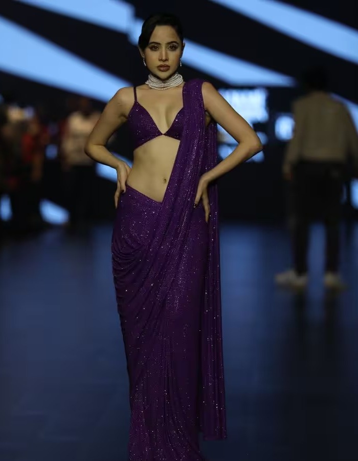 ઉર્ફી જાવેદે લેક્મે ફેશન વીકમાં ડીપનેક બ્લાઉઝ સાથે સાડી પહેરી હતી.